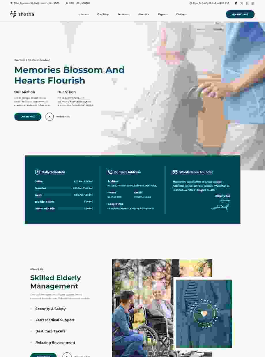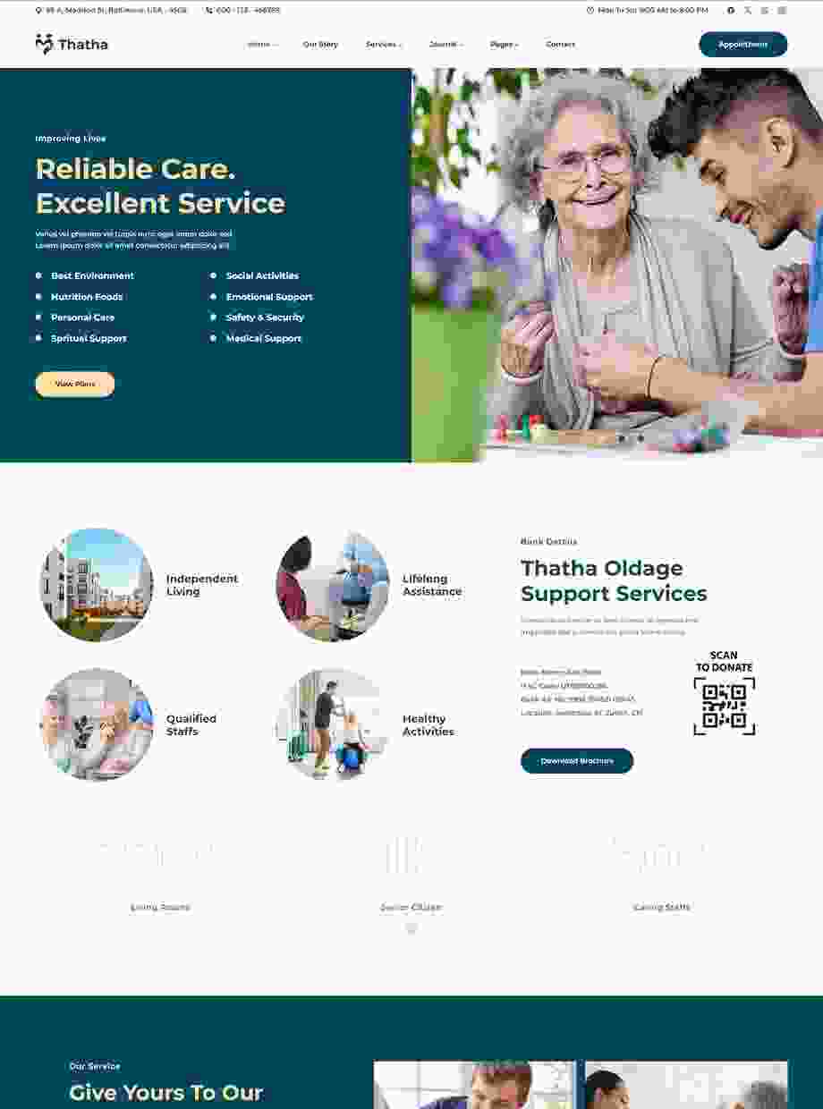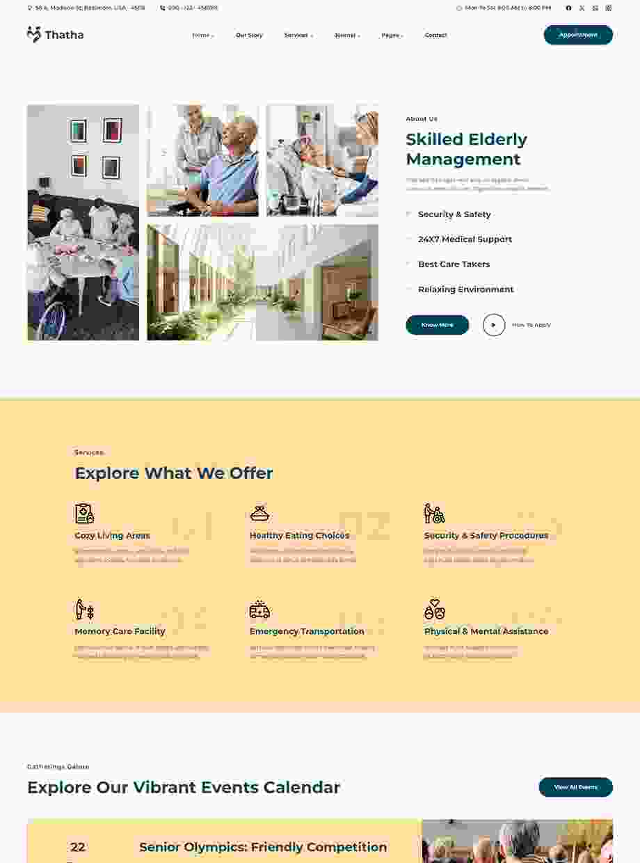 Thatha is a specially designed theme for Senior Care & Elderly Nursing selling websites. The flexible customization funtionality of the theme Latest articles or tips on senior health, caregiving, activities, etc.